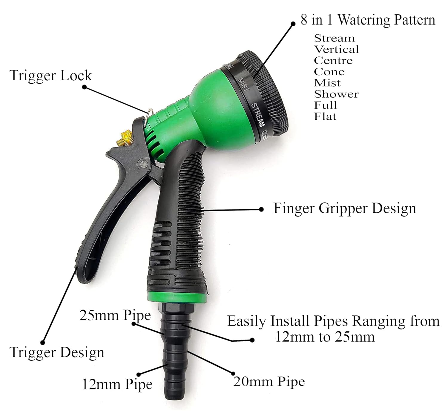 Crafted from durable plastic with an ergonomic anti-slip grip, this spray gun offers 8 adjustable spray patterns to suit every task—from a gentle mist for plants to a powerful jet for washing cars, bikes, and outdoor areas. Compatible with most standard garden hoses, it’s the perfect tool for gardening, cleaning, and multipurpose home use.