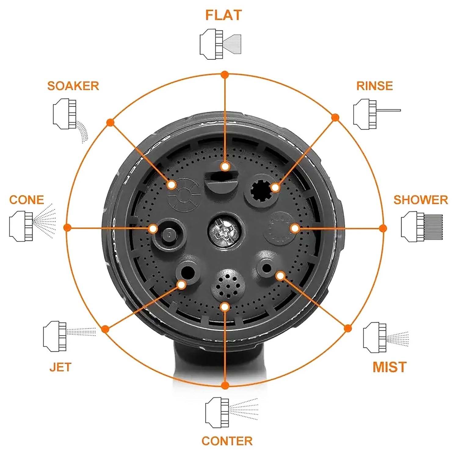- 8 Spray Modes: Choose from mist, shower, cone, jet, and more for versatile use.