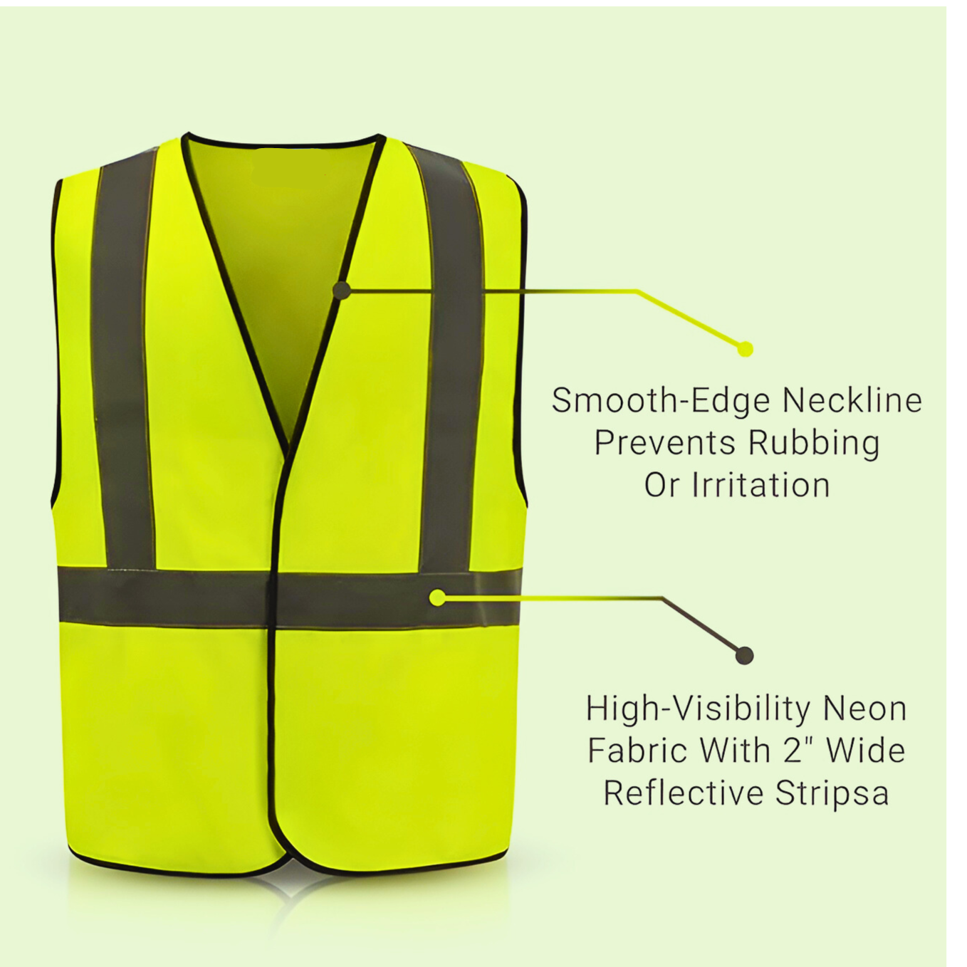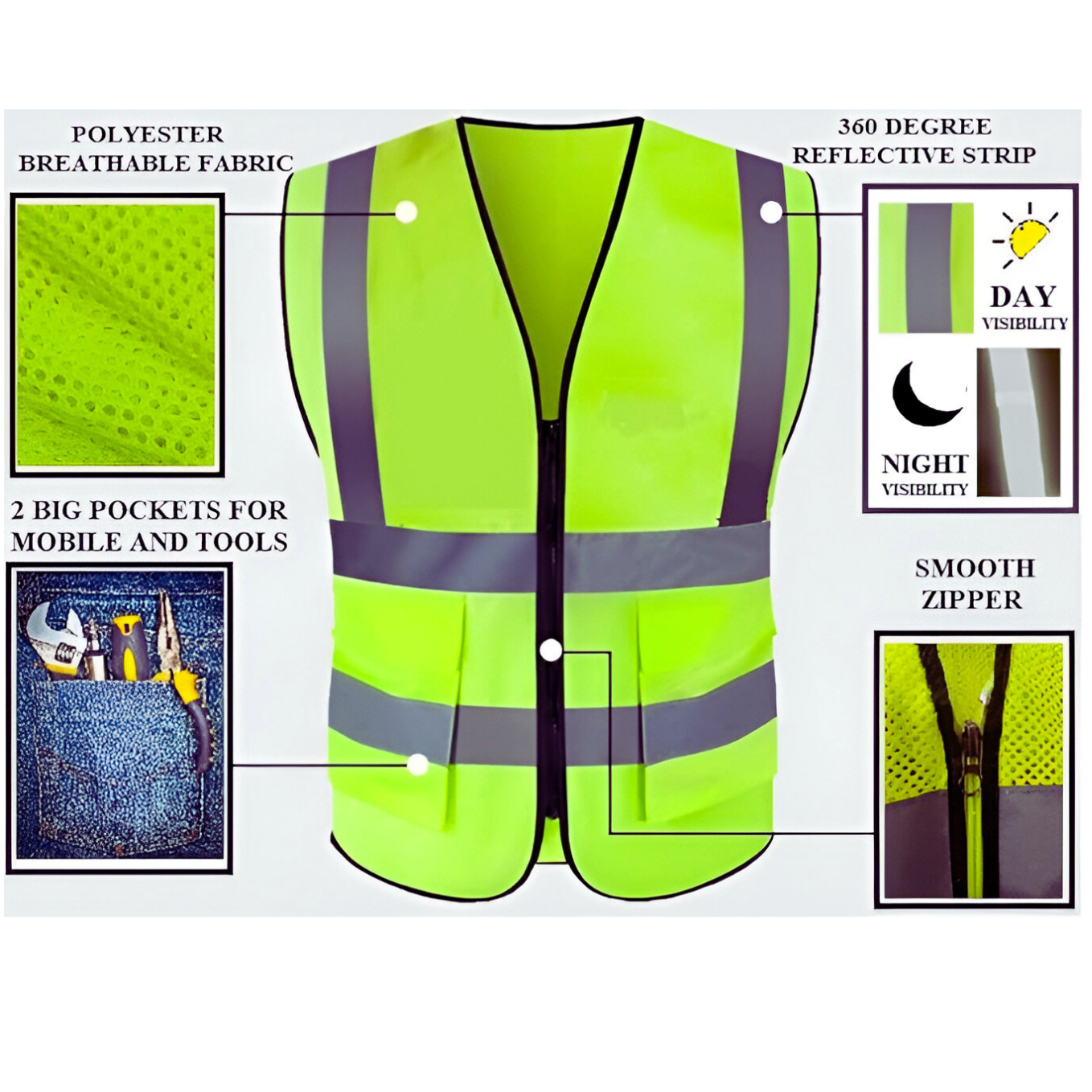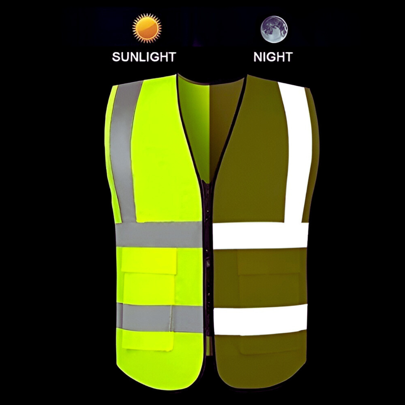 - High Visibility: Bright fluorescent color with wide reflective strips for day & night visibility.